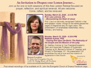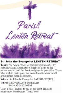 The Pastor and staff invite you and the people of St. John the Evangelist Church to joyfully celebrate the Eucharist, faithfully teach Catholic tradition, and enthusiastically form Catholic spirituality, so that together we may go forth in love to serve the Lord and each other.