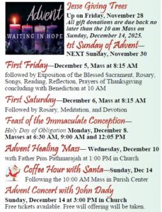 1st Friday 8:15am Mass followed by Eucharistic Adoration