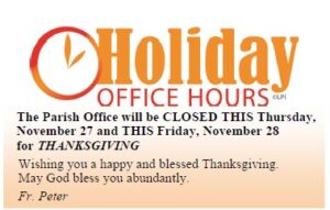 Parish Office Thanksgiving Hours
