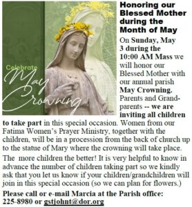 1st Saturday 8:15am Mass followed by Rosary, Meditation & Devotional Prayer